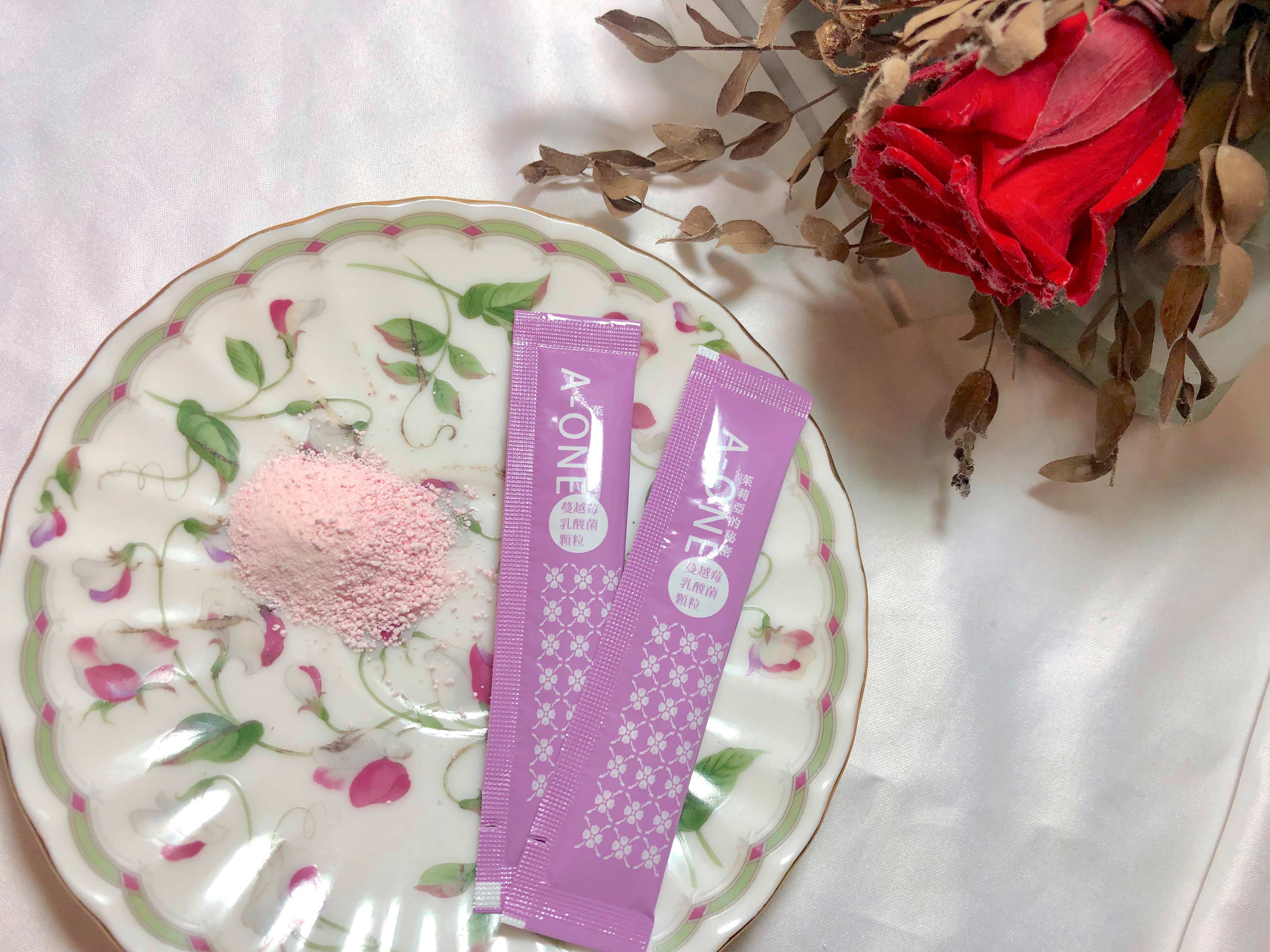 可以看到粉末狀的粉嫩乳酸菌,吃下去酸酸甜甜的,居然有點像零嘴糖果一樣很好吃,沒有任何異味