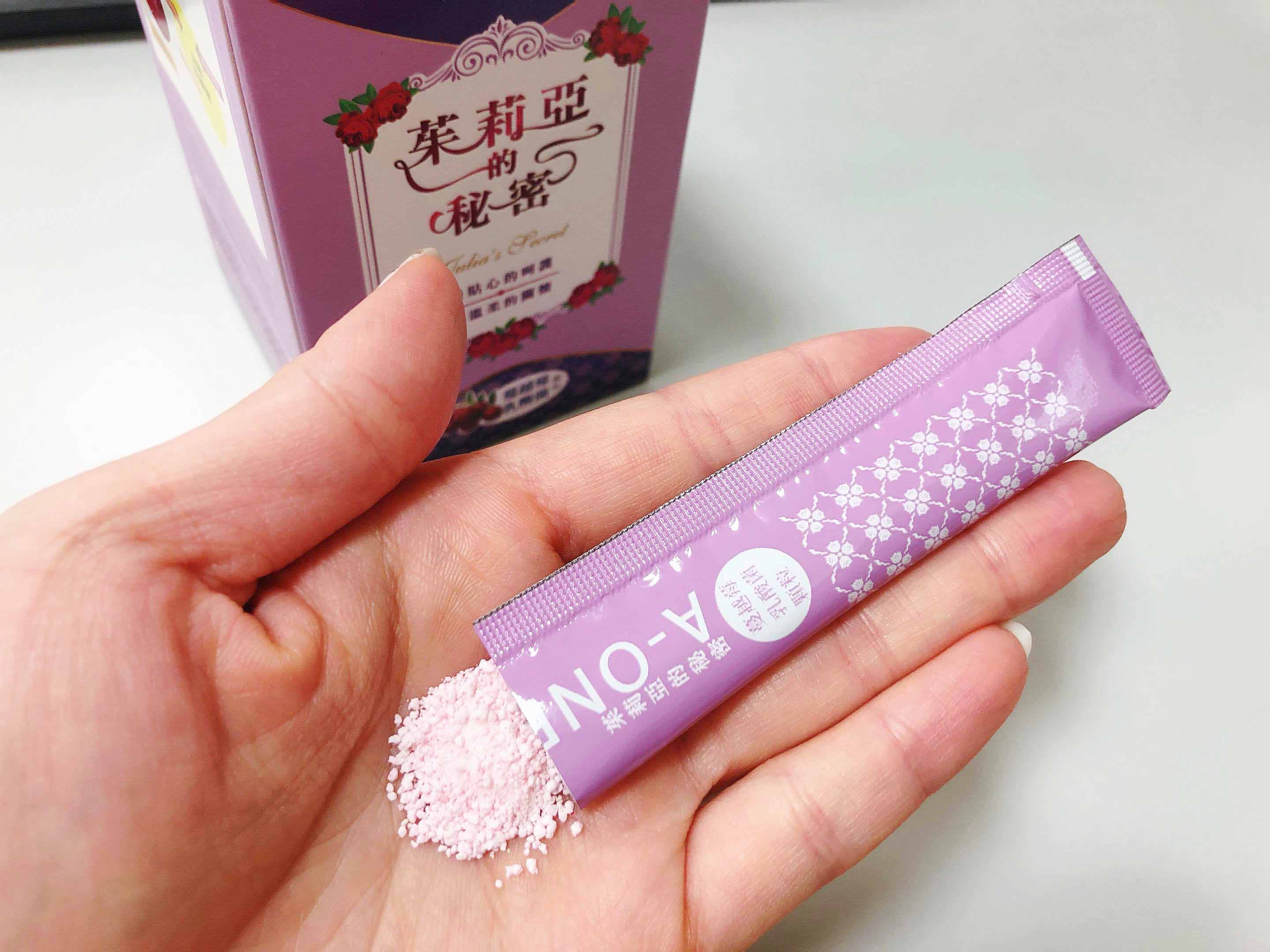 是粉末狀,比一般顆粒狀的更好吸收,酸酸甜甜的滋味很好入口,是女生都會喜歡的口味