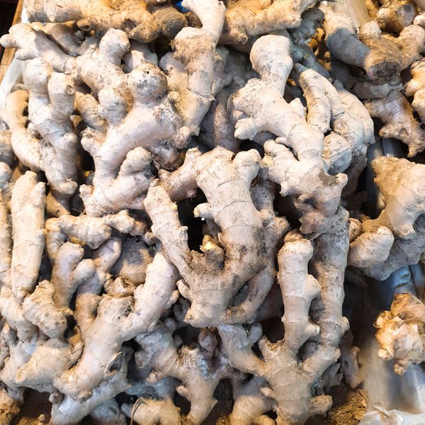 老薑烘乾後,將薑研磨成粉末製作